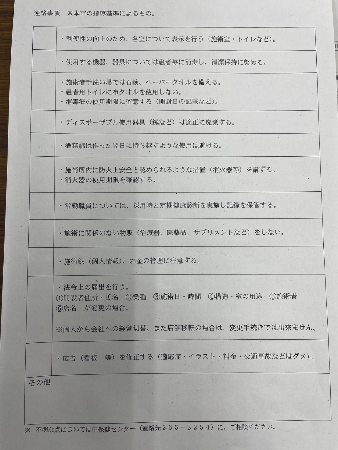鍼灸の場合は業務委託に関することとして廃棄物処理にかかる委託契約書(マニフェスト及び受託者許可証の写し)がいります。