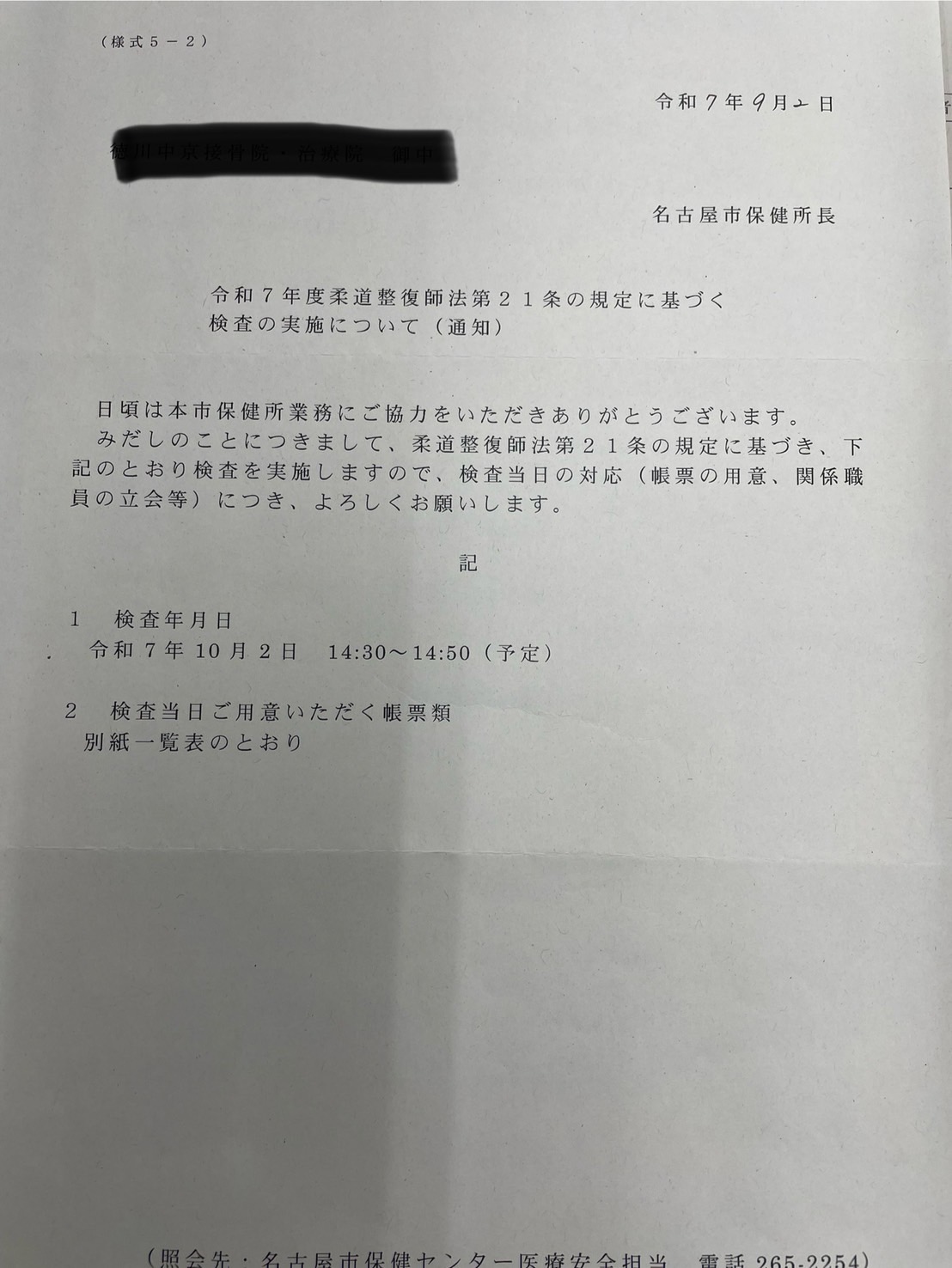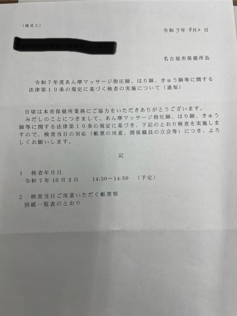 接骨院に保健所の調査が入りました