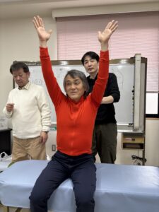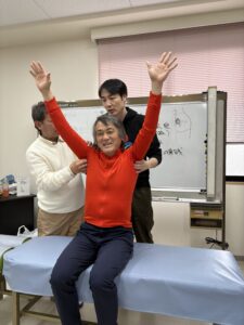 その他にも、肩が上がらないおじさまたちに先生の筋膜リリースが炸裂します!
